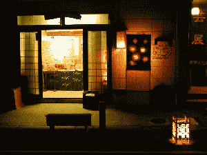 店舗入り口 ライトアップされた店舗